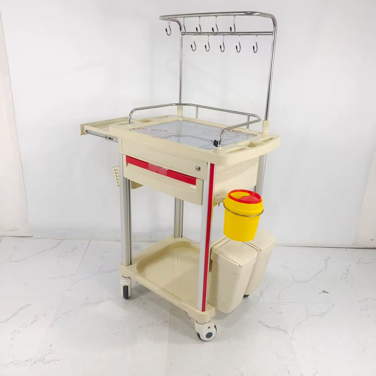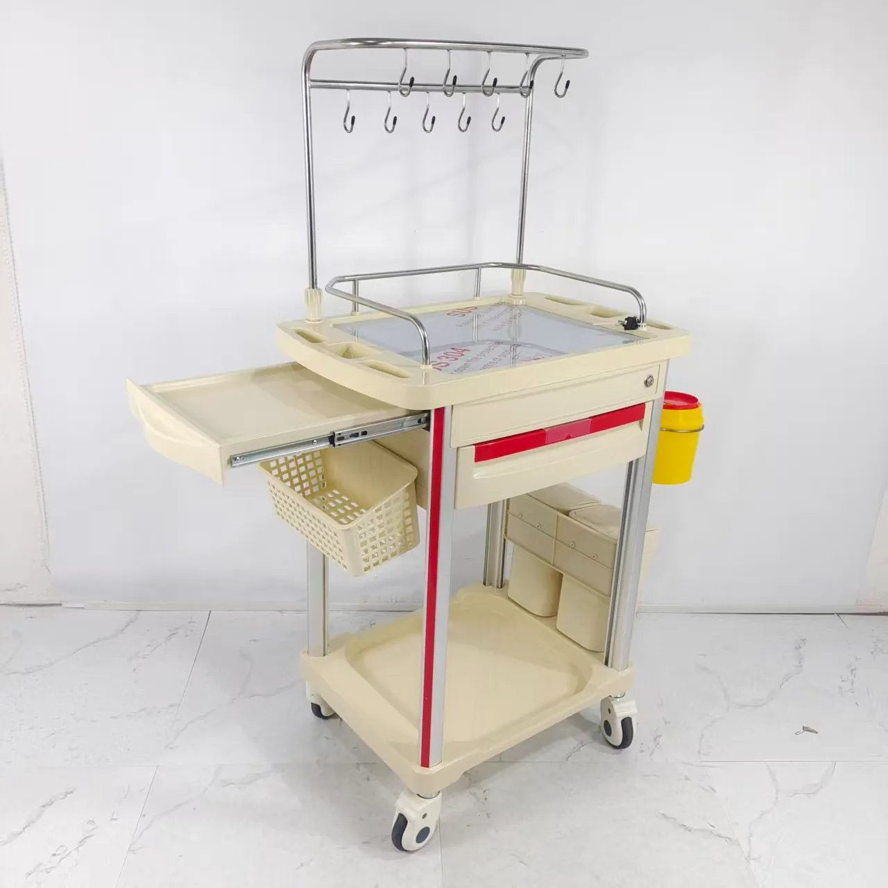 Modular configuration: Customizable layout, drawers, guardrails, IV pole mounting holes, and more to meet the needs of different departments (such as nursing, anesthesia, emergency, and dressing changes).