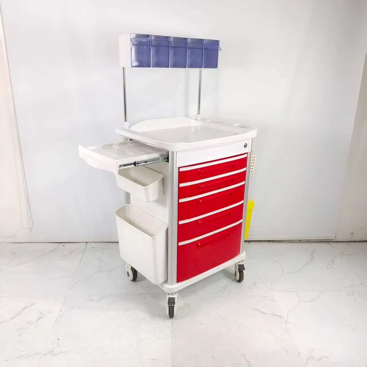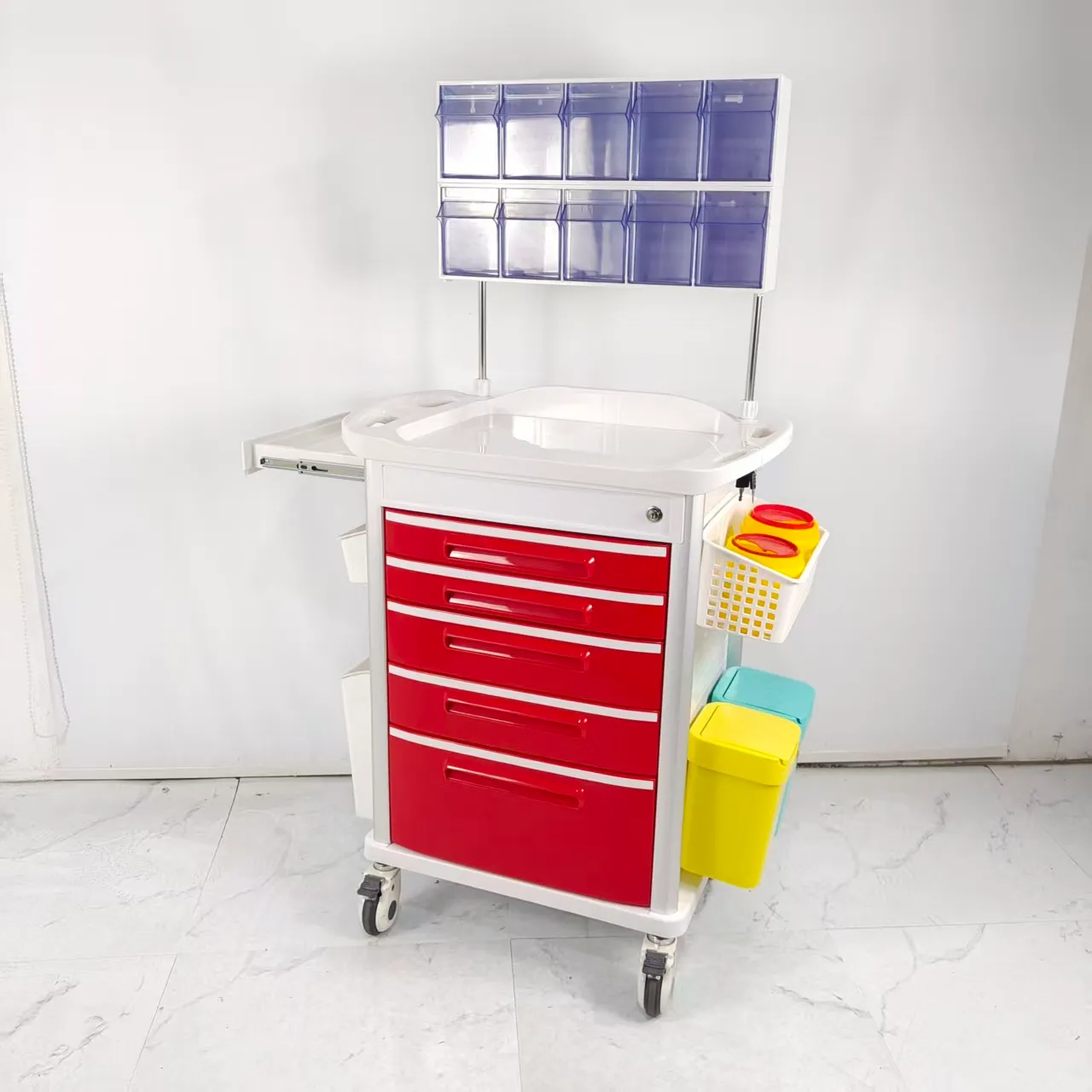 Located on the side of the cart, it is designed to extend the desktop area, save space and meet medical needs.