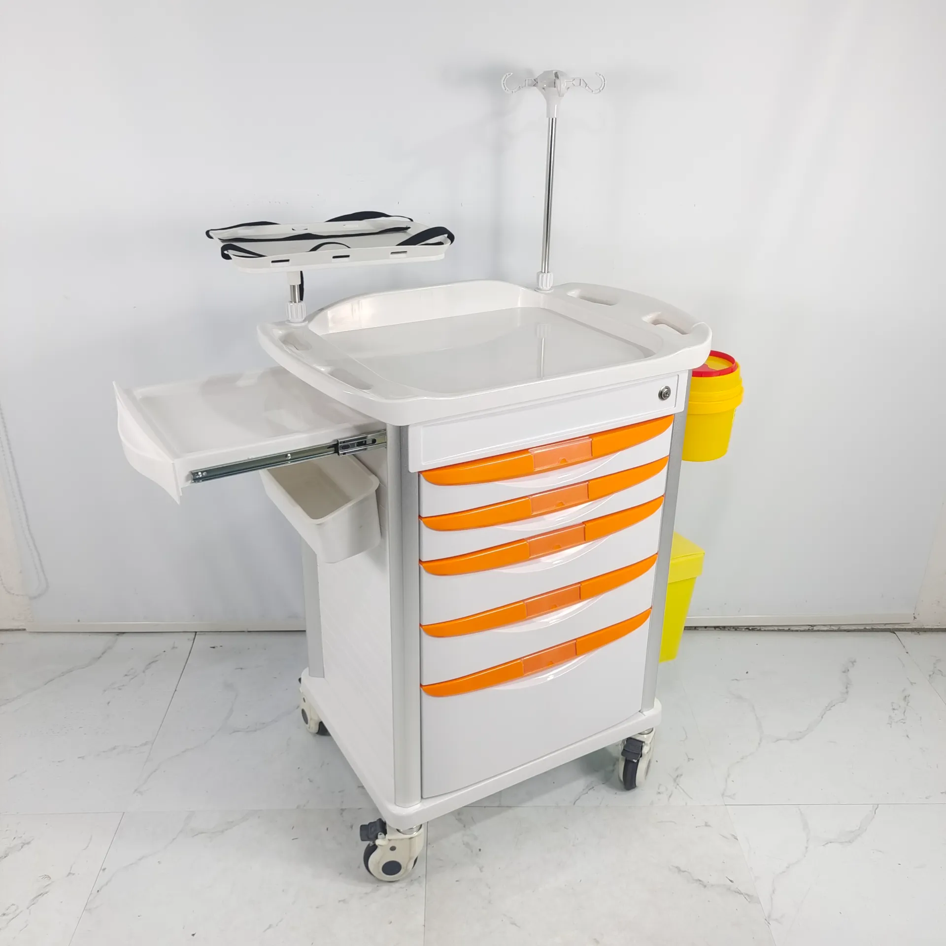 Located on the side of the cart, it is designed to extend the desktop area, save space and meet medical needs.