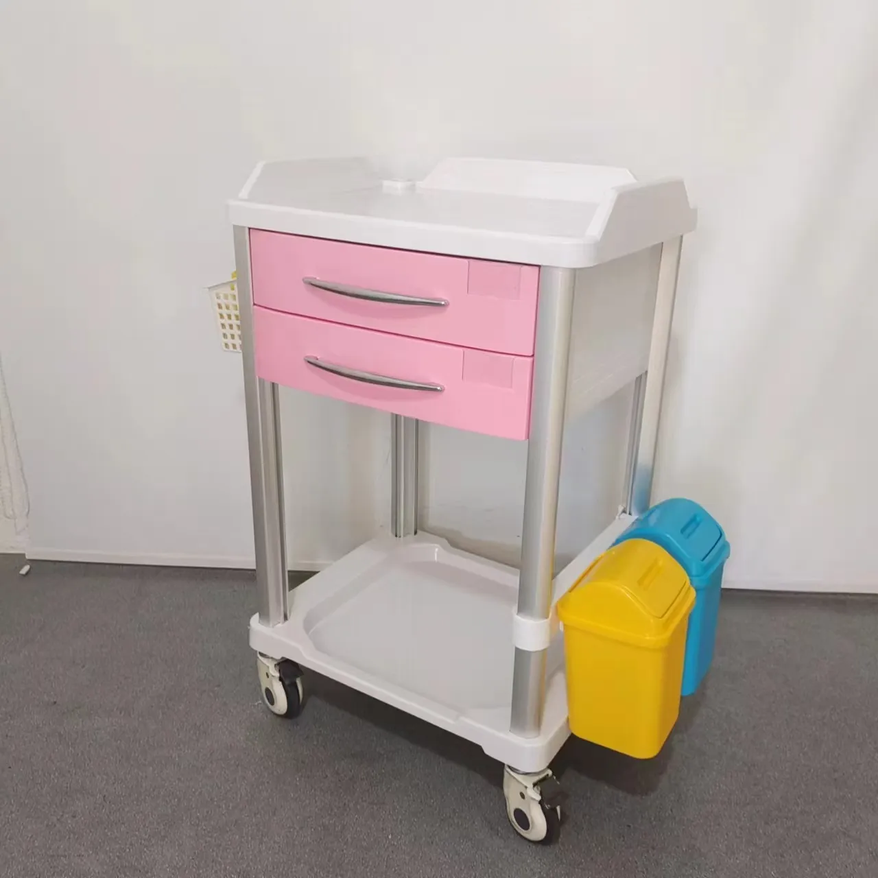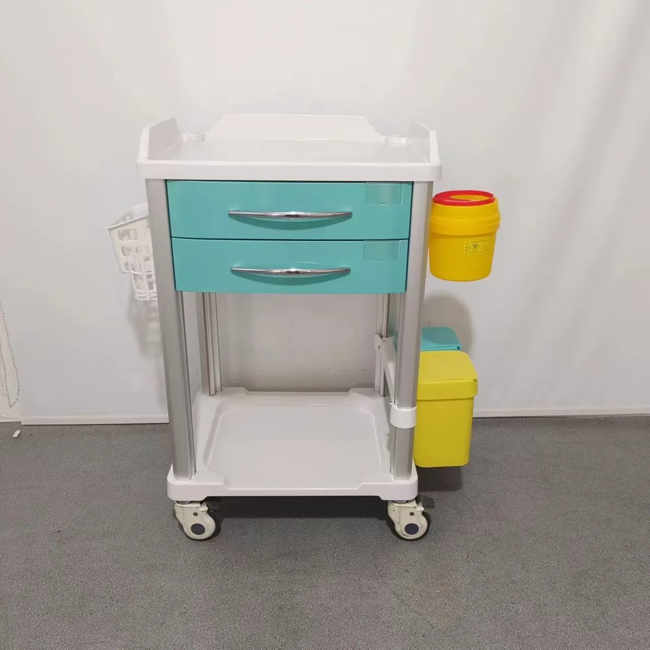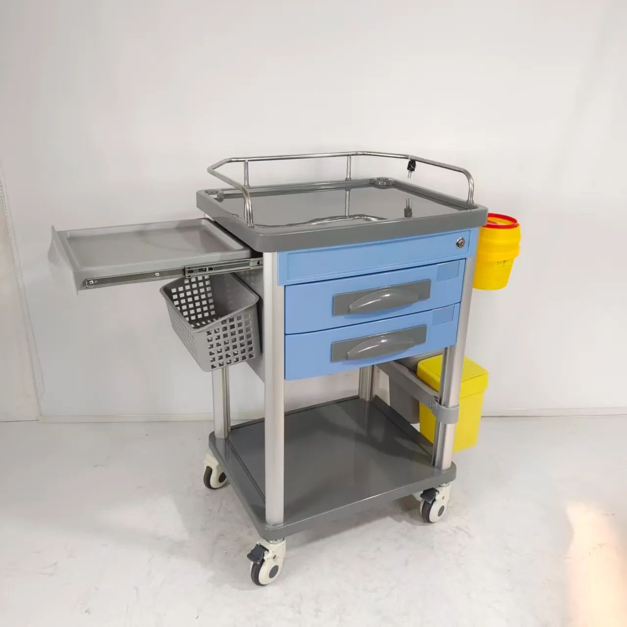 - Construction: The construction of the anesthesia cart is characterized by the implementation of four aluminum alloy metal columns as the main body of the frame, providing exceptional strength and impact resistance, which significantly reduces the likelihood of structural failure. Complementing this robust framework, the main shell components are constructed from ABS material, specifically chosen for its compatibility with disinfection processes, high-temperature resistance, and long-term durability within medical environments. Furthermore, the ABS material offers corrosion resistance, ensuring the longevity and reliability of the anesthesia cart in demanding healthcare settings, ultimately contributing to a safer and more efficient workflow for medical professionals.