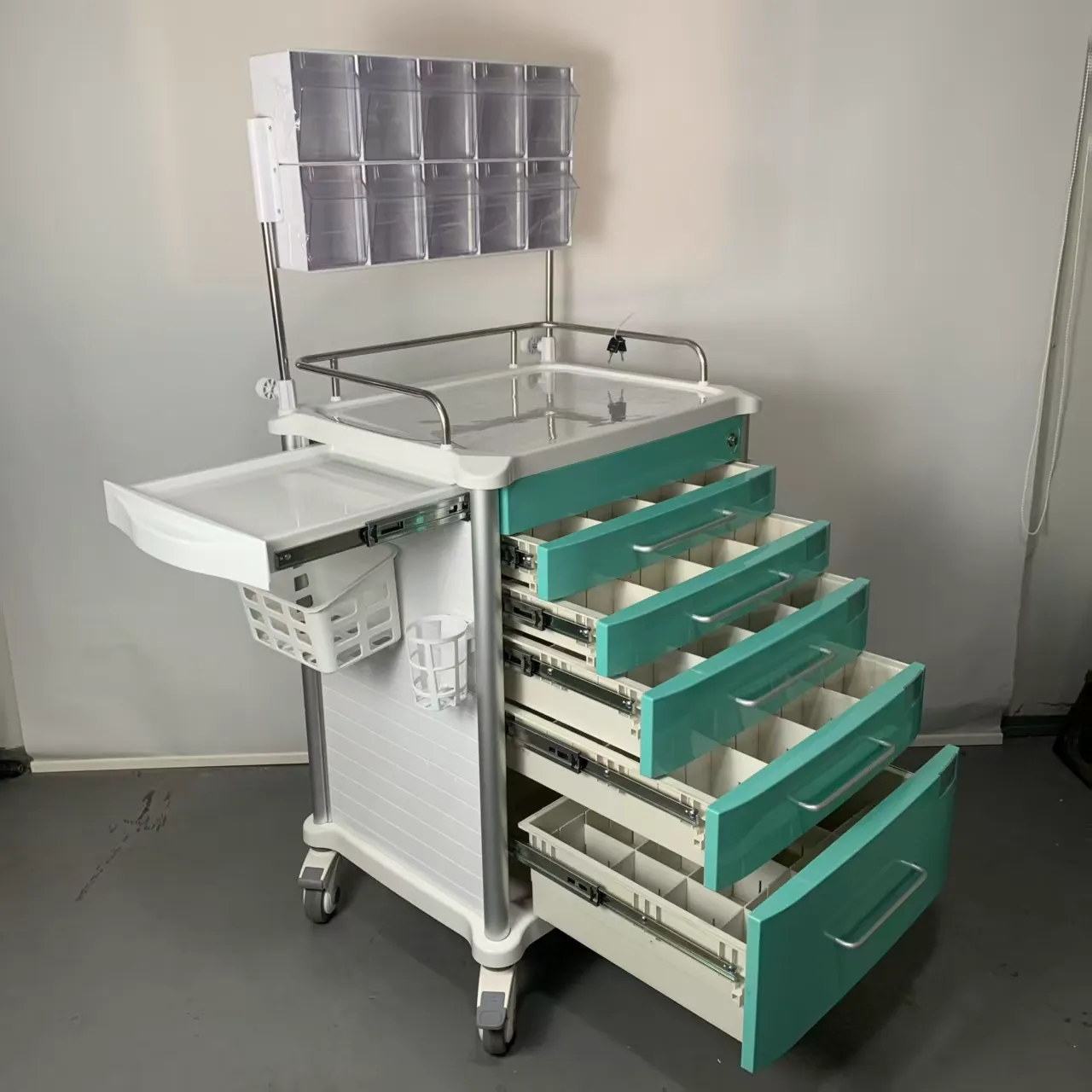 Modular configuration: Customizable layout, drawers, guardrails, IV pole mounting holes, and more to meet the needs of different departments (such as nursing, anesthesia, emergency, and dressing changes).