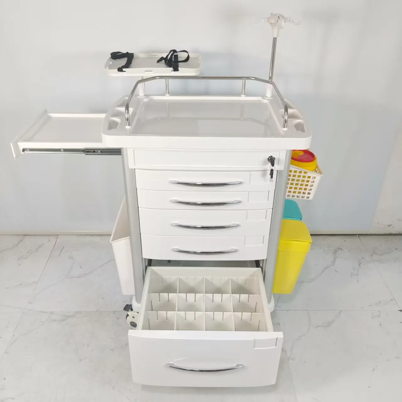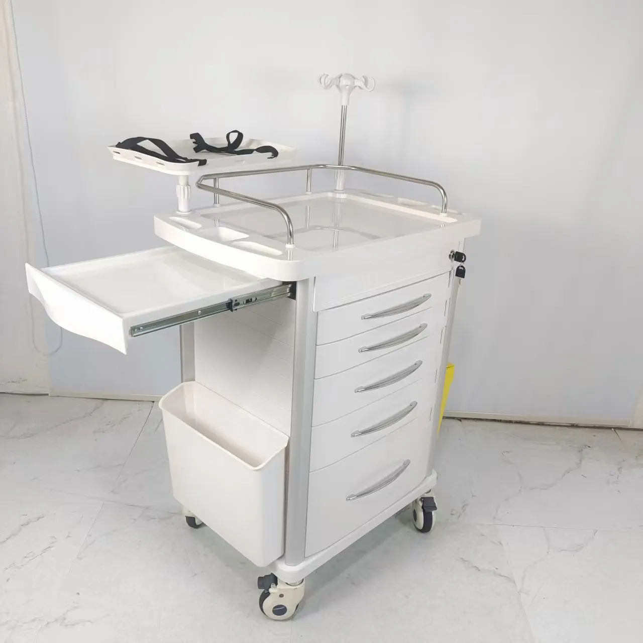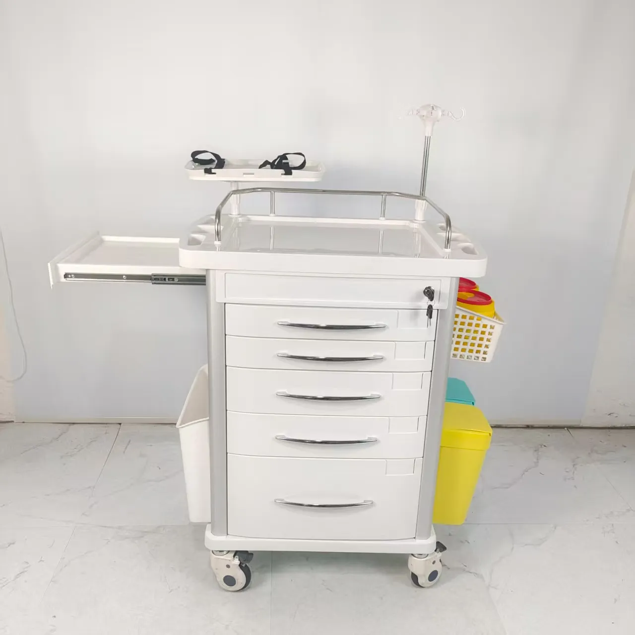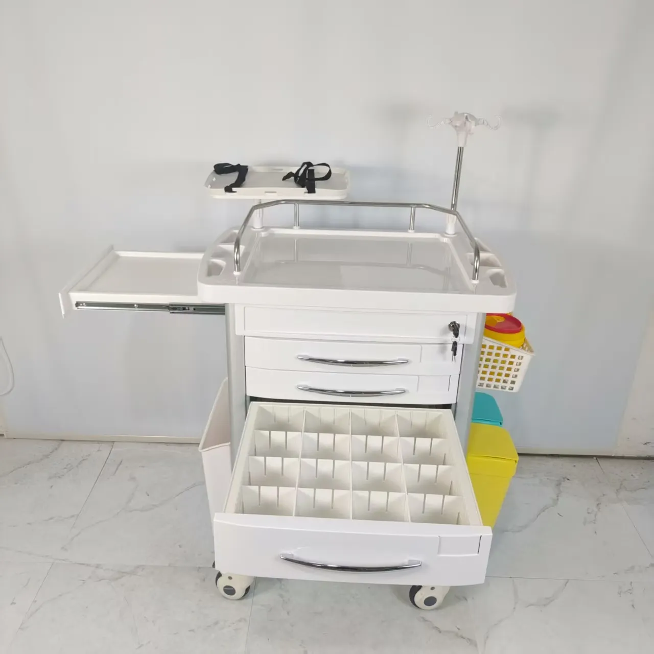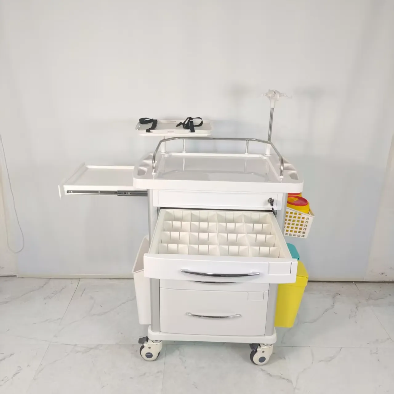 Located on the side of the cart, it is designed to extend the desktop area, save space and meet medical needs.