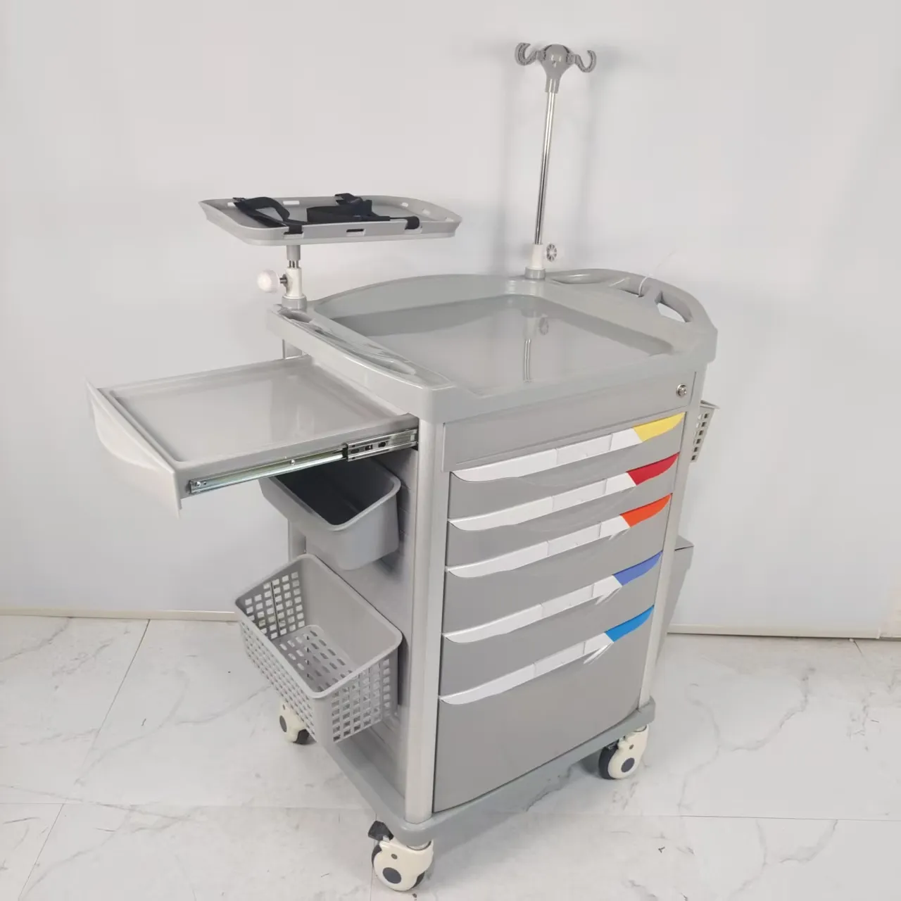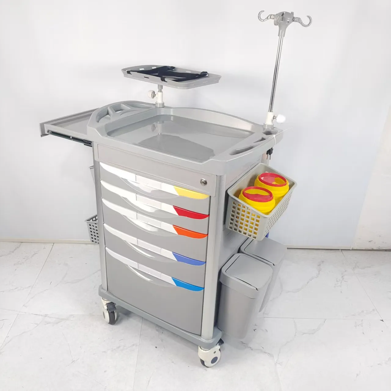 Located on the side of the cart, it is designed to extend the desktop area, save space and meet medical needs.