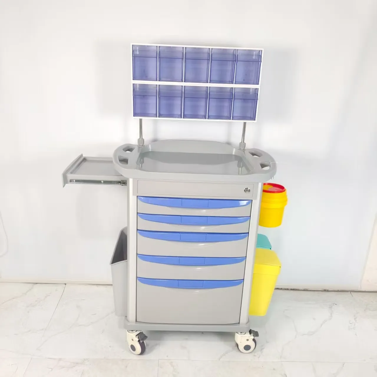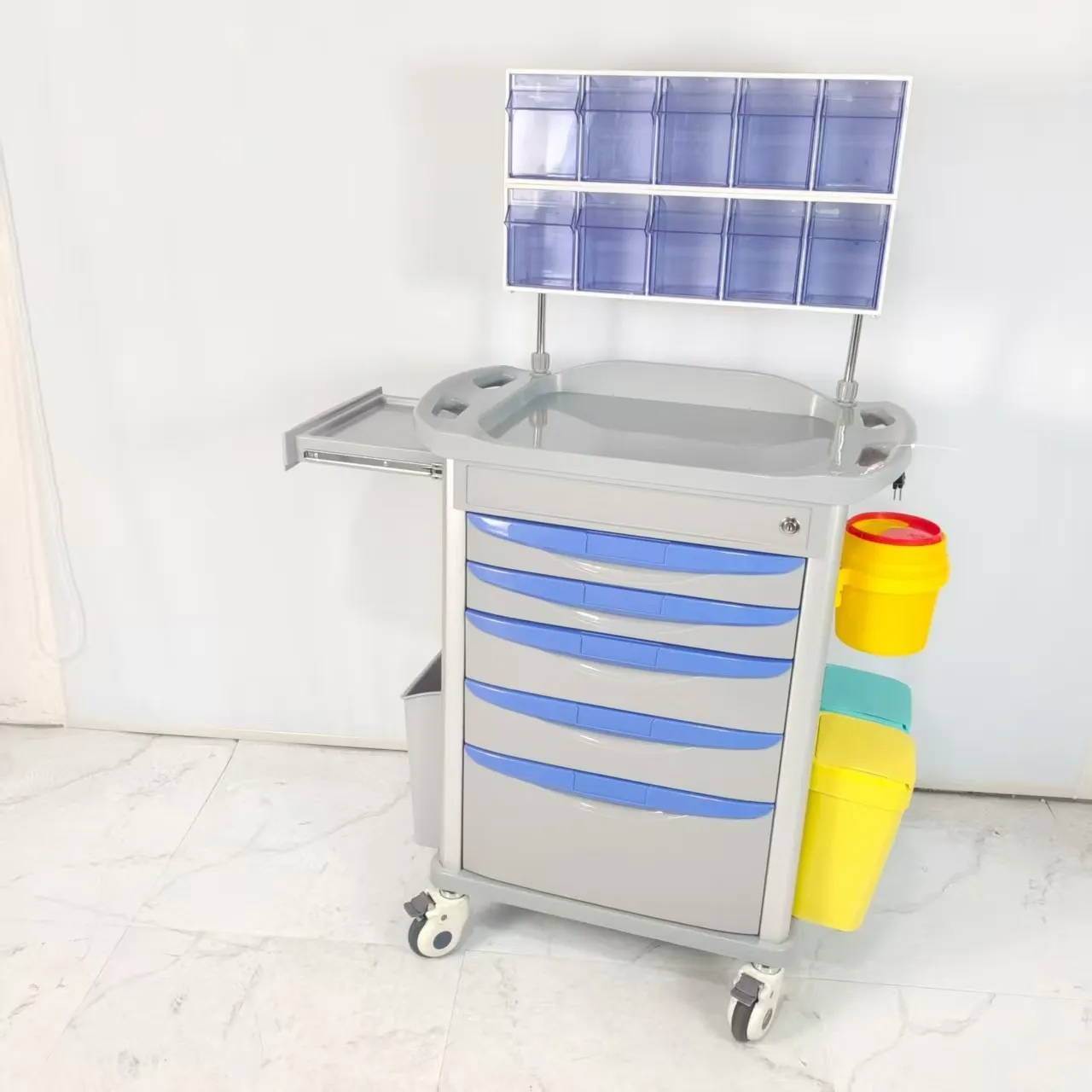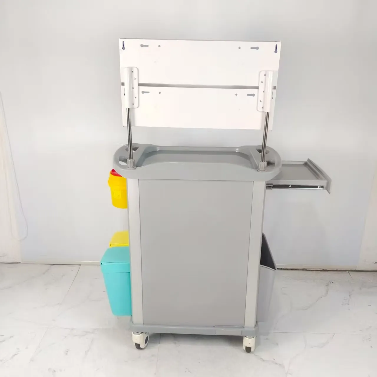 Located on the side of the cart, it is designed to extend the desktop area, save space and meet medical needs.